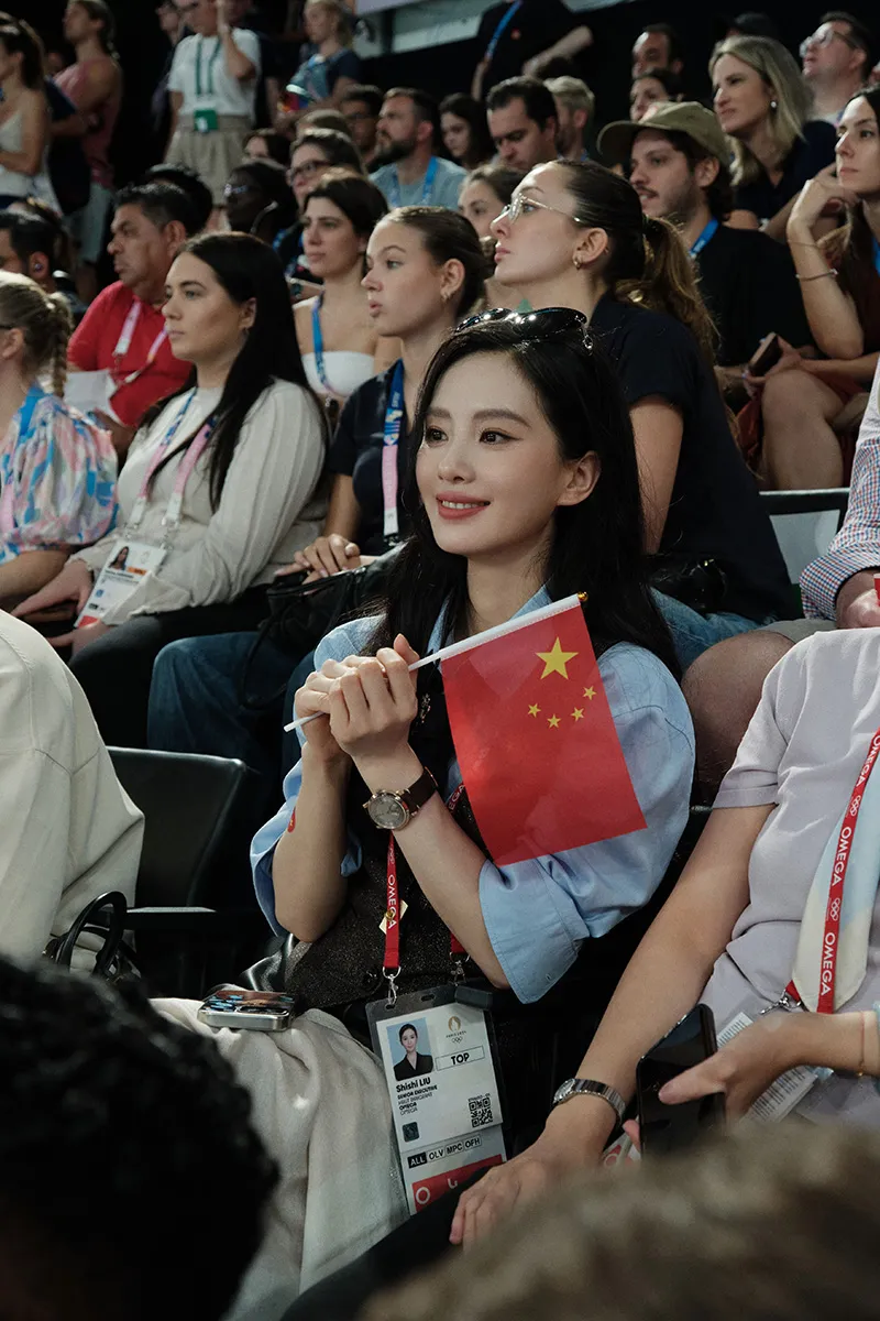 Actress Cecilia Liu Shishi observes the Artistic Gymnastics – Women’s Team Final at the Paris 2024 Olympic Games on day 4 at Bercy Arena.
