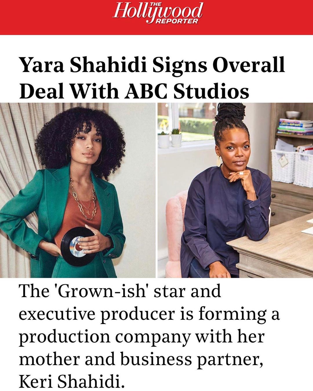 Yara Shahide known for her role as Zoey Johnson on the critically acclaimed ABC comedy series black-ish and its college spin-off grown-ish has signed an overall deal with ABC studios. Yara also launched a production company with her business partner and mother, Keri Shaide as part of the deal called 7th Sun.
