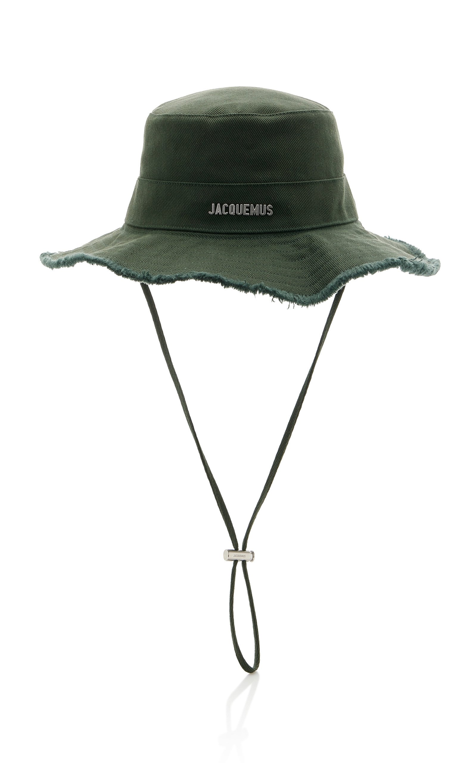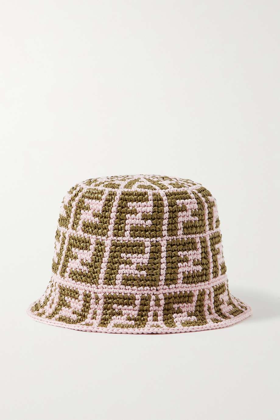 The classic bucket hat from the nineties is reinvented by Fendi in a cotton-blend that is crocheted with contrasting threads to create the label’s “FF” monogram. Its unstructured silhouette makes it equally stylish at the beach as it is with flowy dresses on relaxed days.