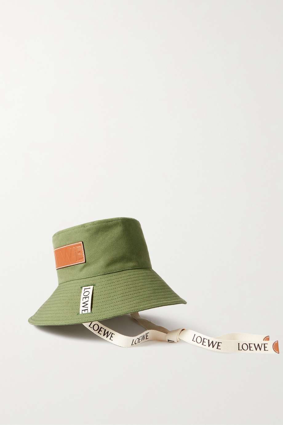 LOEWE Paula’s Ibiza leather-trimmed cotton-canvas bucket hat