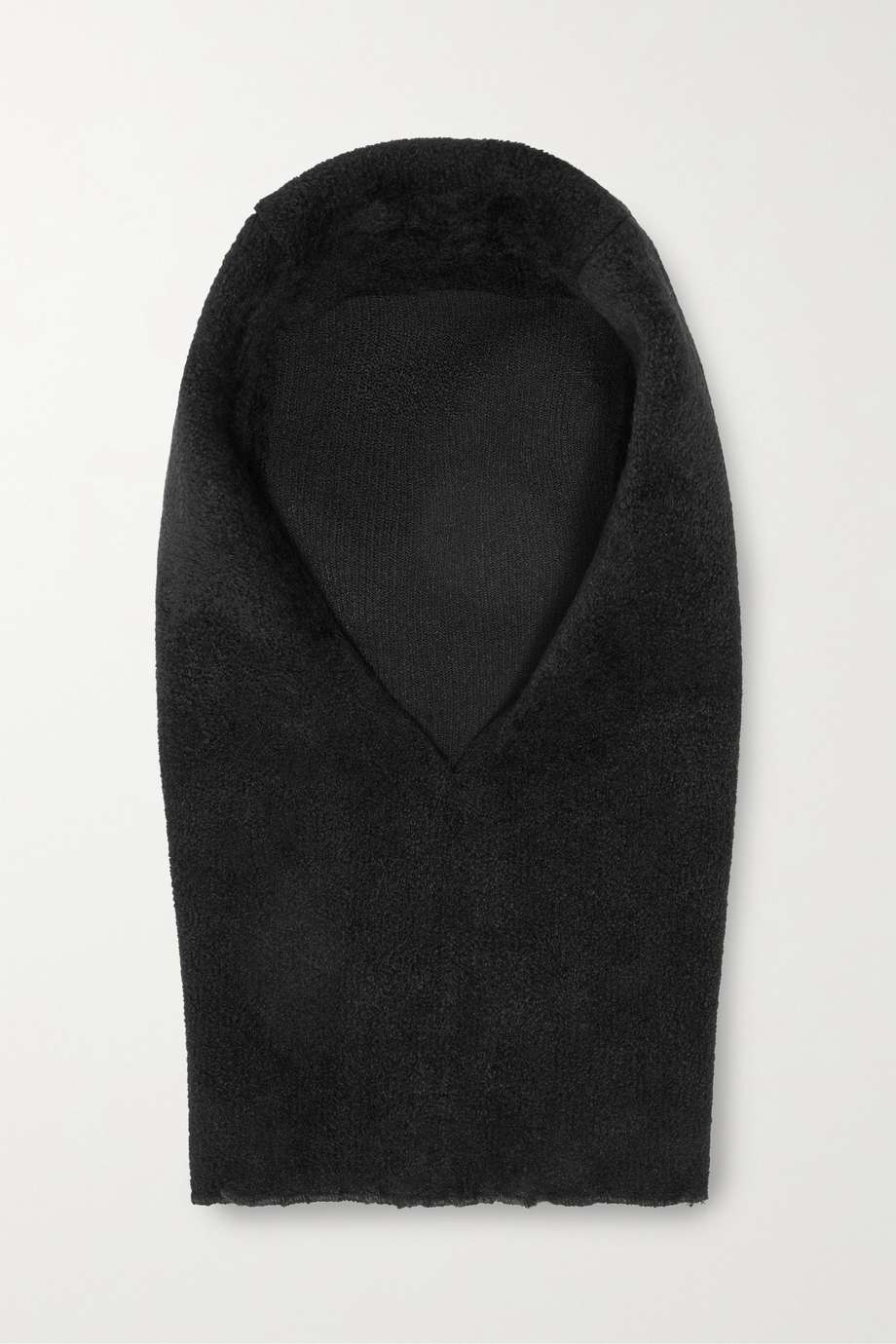 Proenza Schouler’s hood will keep you looking chic while protecting you from the elements. It’s made from black stretch-chenille for a snug yet comfortable fit.