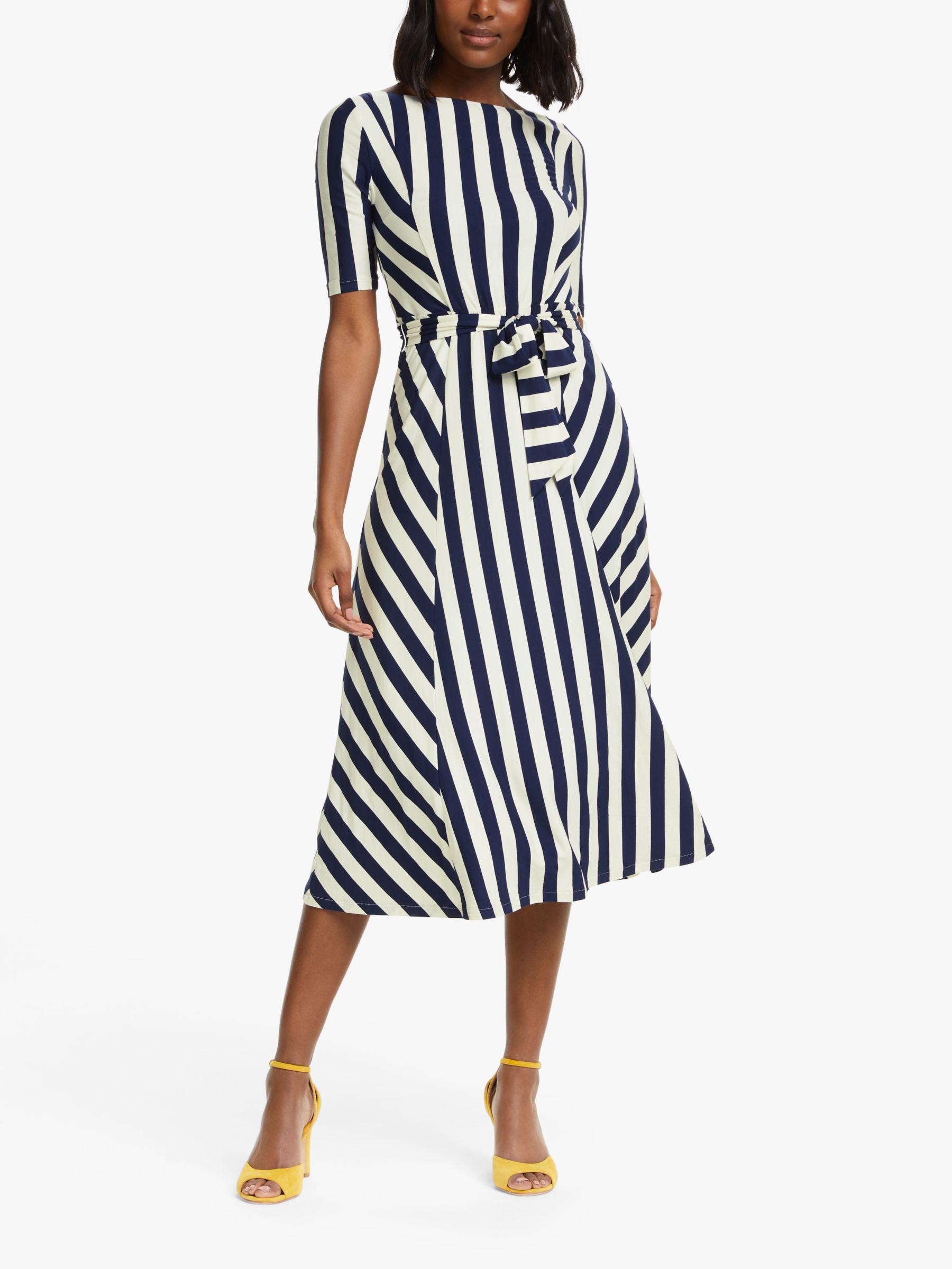 Vertical stripes draw the eye up and down, creating a lengthening effect. Whether you opt for pants or a full-on jumpsuit, make sure your hemlines cover your ankles to keep the elongated visual going.