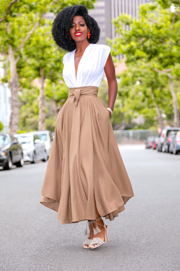 High-waist bottoms, like pencil skirts and jeans, trick your eye into thinking your legs start at a higher point.