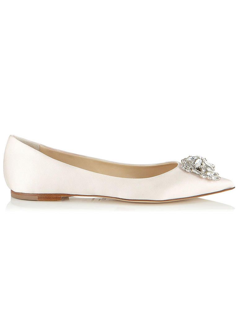 Unlike rounded toe options, pointed toe flats elongate the legs. For an even lengthier look, opt for a shoe with a lower vamp to show off more of the foot.
