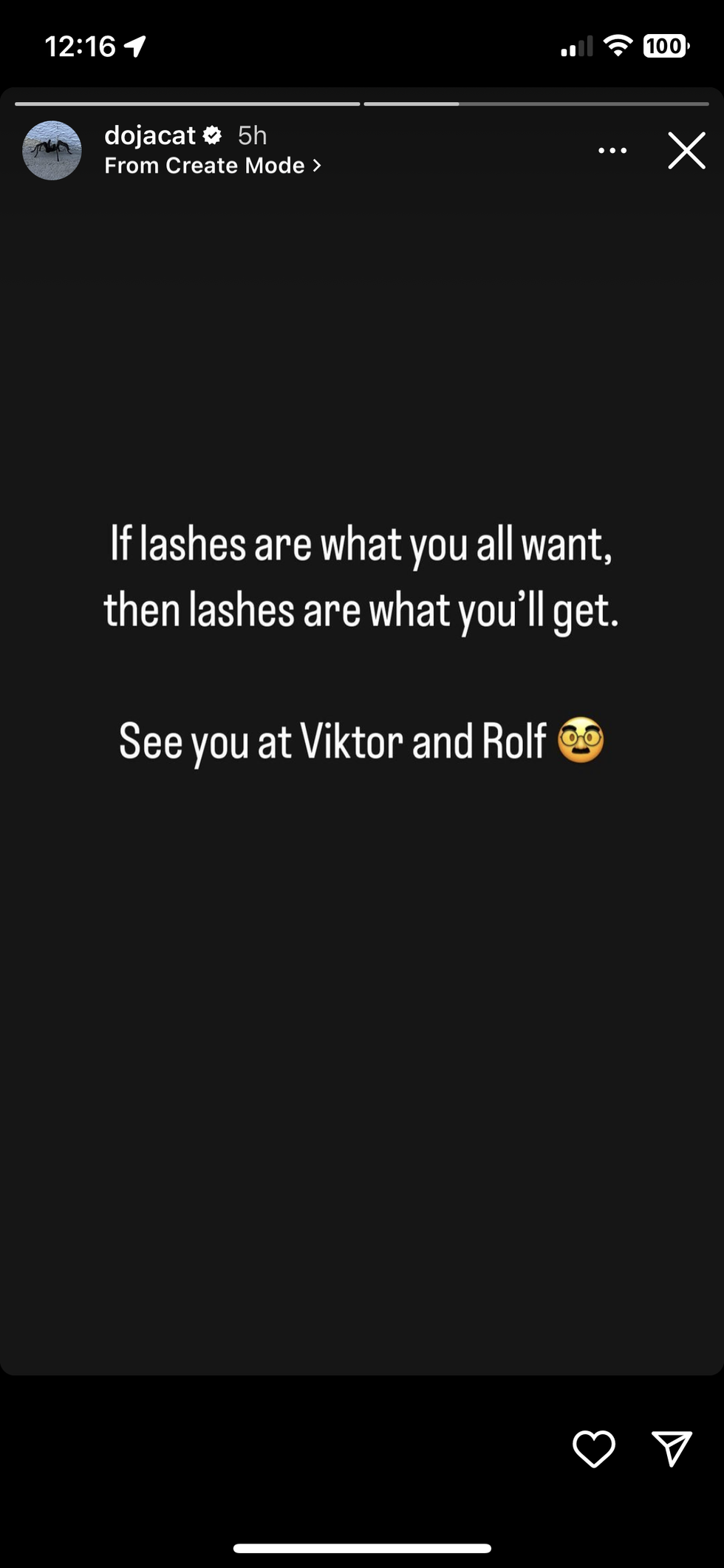 “If lashes are what you all want, then lashes are what you’ll get. See you at Viktor and Rolf 🥸” she wrote.