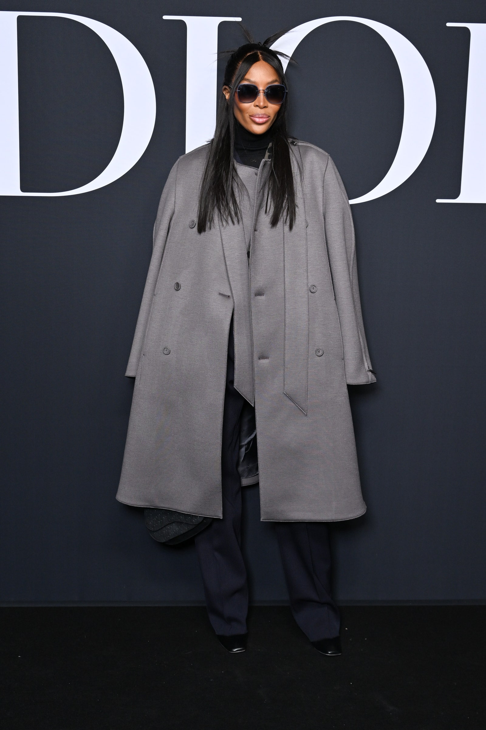 On Friday during Paris Fashion Week, Naomi Campbell attended the Dior Homme show while donning a coat-centered outfit.