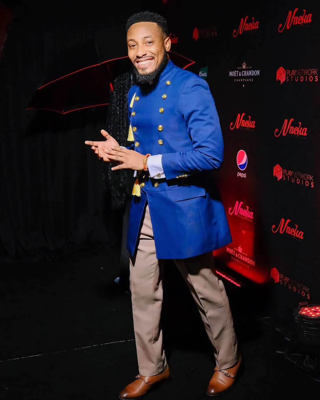 Lookin dapper in blue – this was one of the colors for the men at event, wearing a custom coat by idrizkingsman