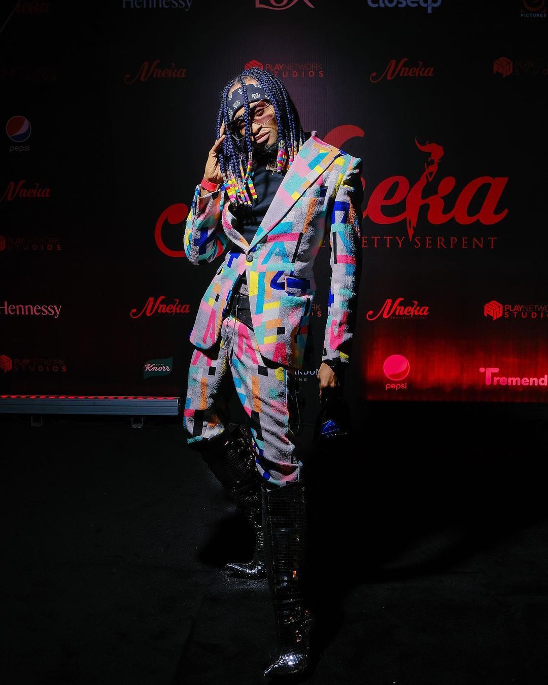If you ever need style inspiration from someone that makes uncoventional look so good? Onyibekeh is definitely your plug! Wearing wezdhurmfranklyn, she paired her look with matching heels opting for cornrows – Elegante.
