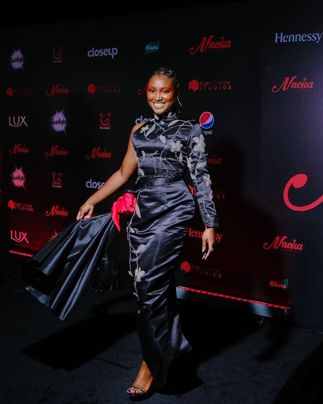 They say there’s power in a red dress and Beverly Osu is living proof. Wearing Good Girl Code, the star opted for matching heels – making sure we get full glimpse of her toned legs.
