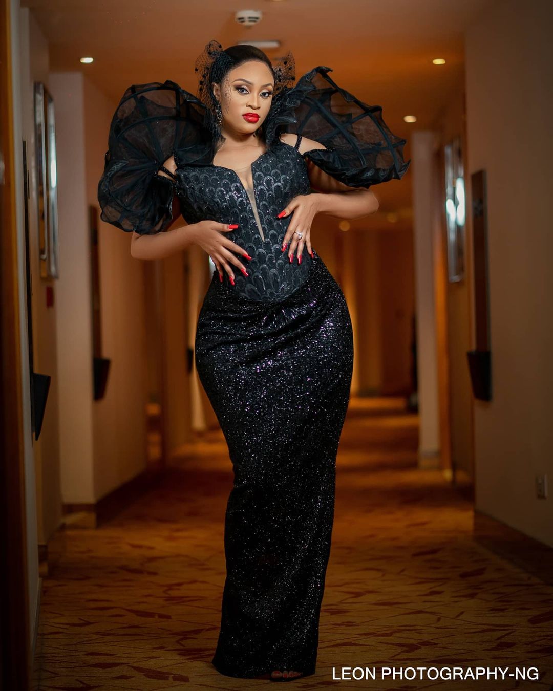 Nigeria’s former reality Tv star and now mum kept things simple and beautiful with slit black gown – appreciating her body with every curve.