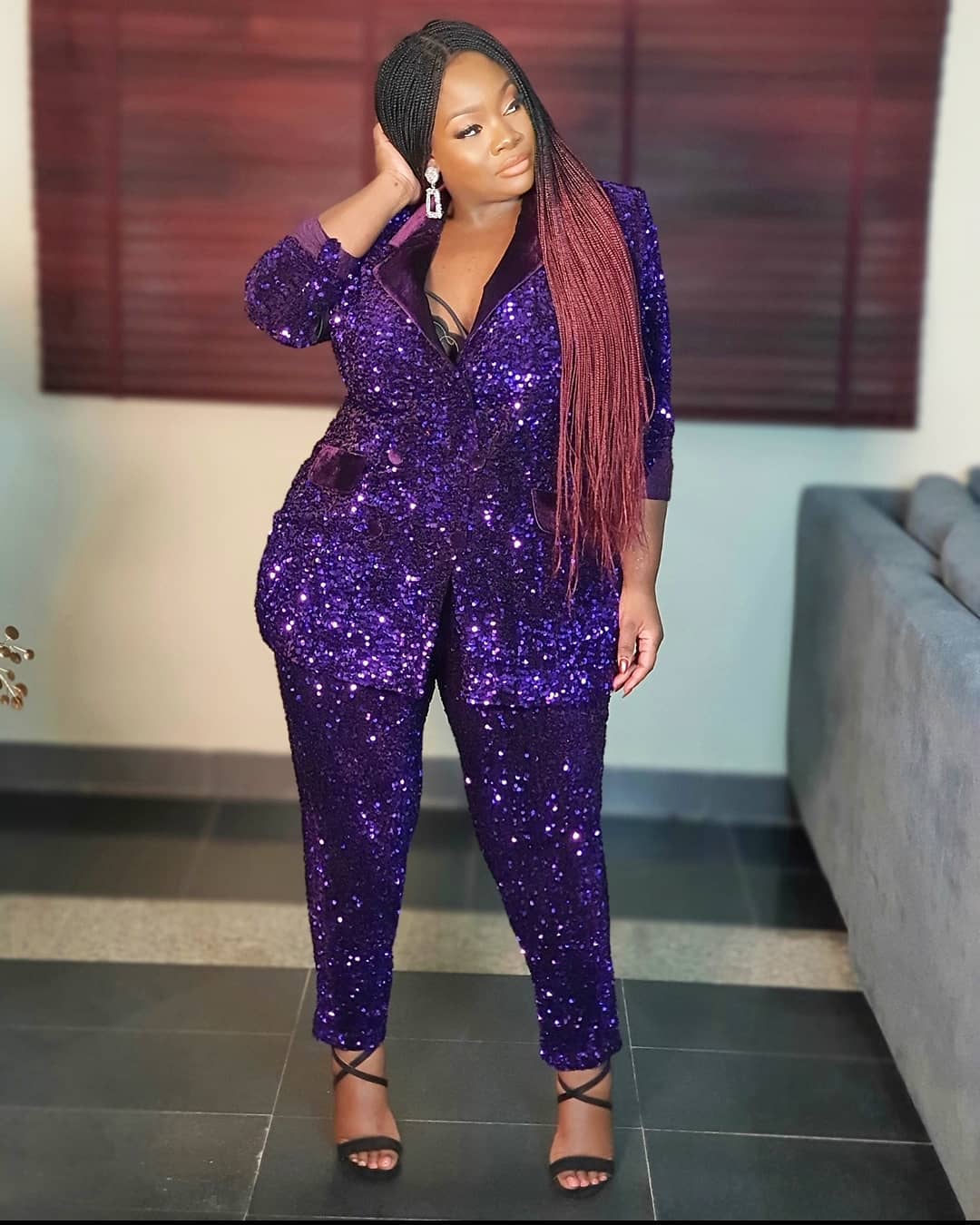 Tolu Oniru, popularly known as Toolz, a Nigerian radio personality, talk show host, and presenter looked stunning in a violet sequin two-piece.