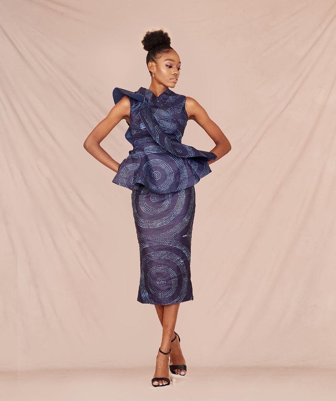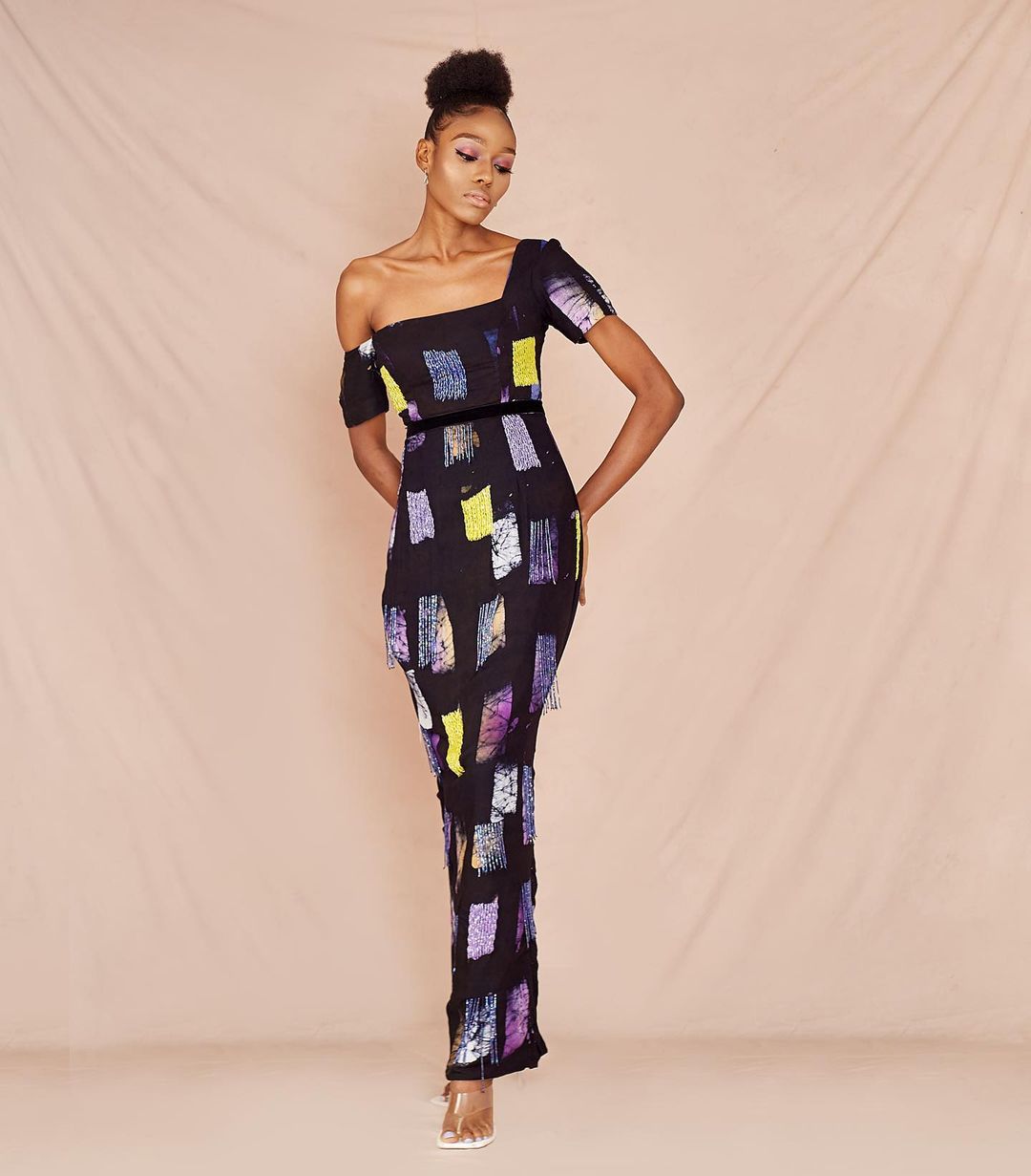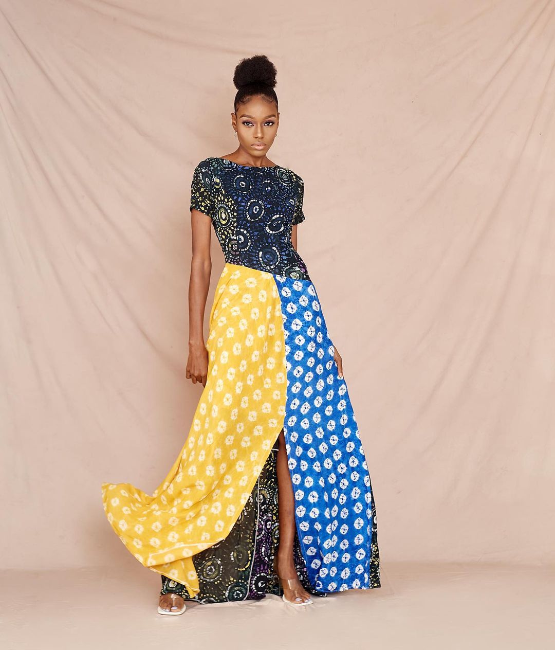 The Adesuwa is contemporary art in a dress. It is intrinsic dye work with modern twist. The contrast of colours, flow of fabric, the peekaboo slit make all the Adesuwa is statement.