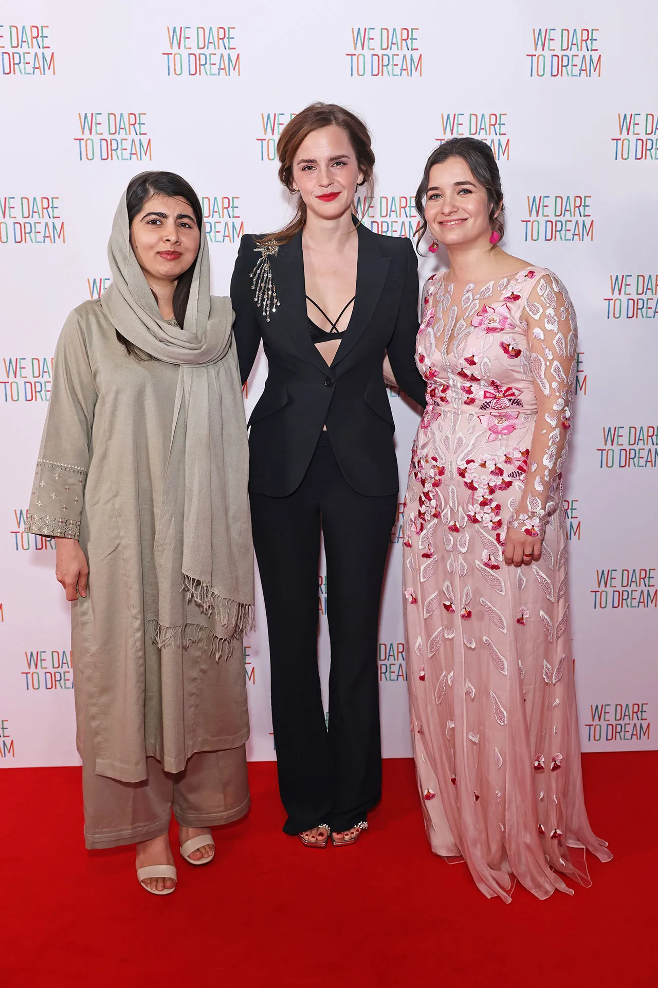 Watson, alongside activist Malala Yousafzai, posed at an event to promote her film, Dare to Dream, which focuses on the challenges faced by refugee athletes competing in the 2020 Olympic Games. The film follows five athletes from Syria, Cameroon, South Sudan, and Iran.