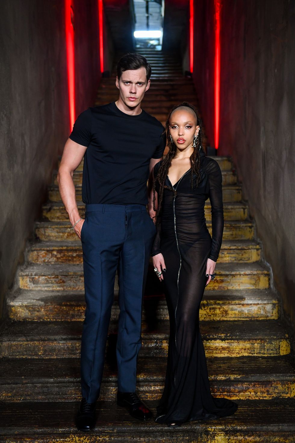 And now, FKA Twigs arrived at the London photo call to promote her new goth-superhero film, The Crow, in a look that took a style cue from Morticia Addams. Twigs posed in a sheer, ruched bodycon dress by Atlein at the press event. The figure-hugging silhouette featured a long silver zipper down the front and was styled with a black bra and coordinating bottoms underneath.