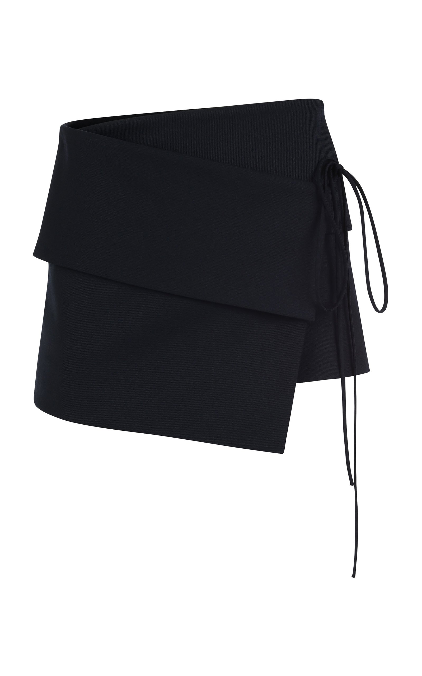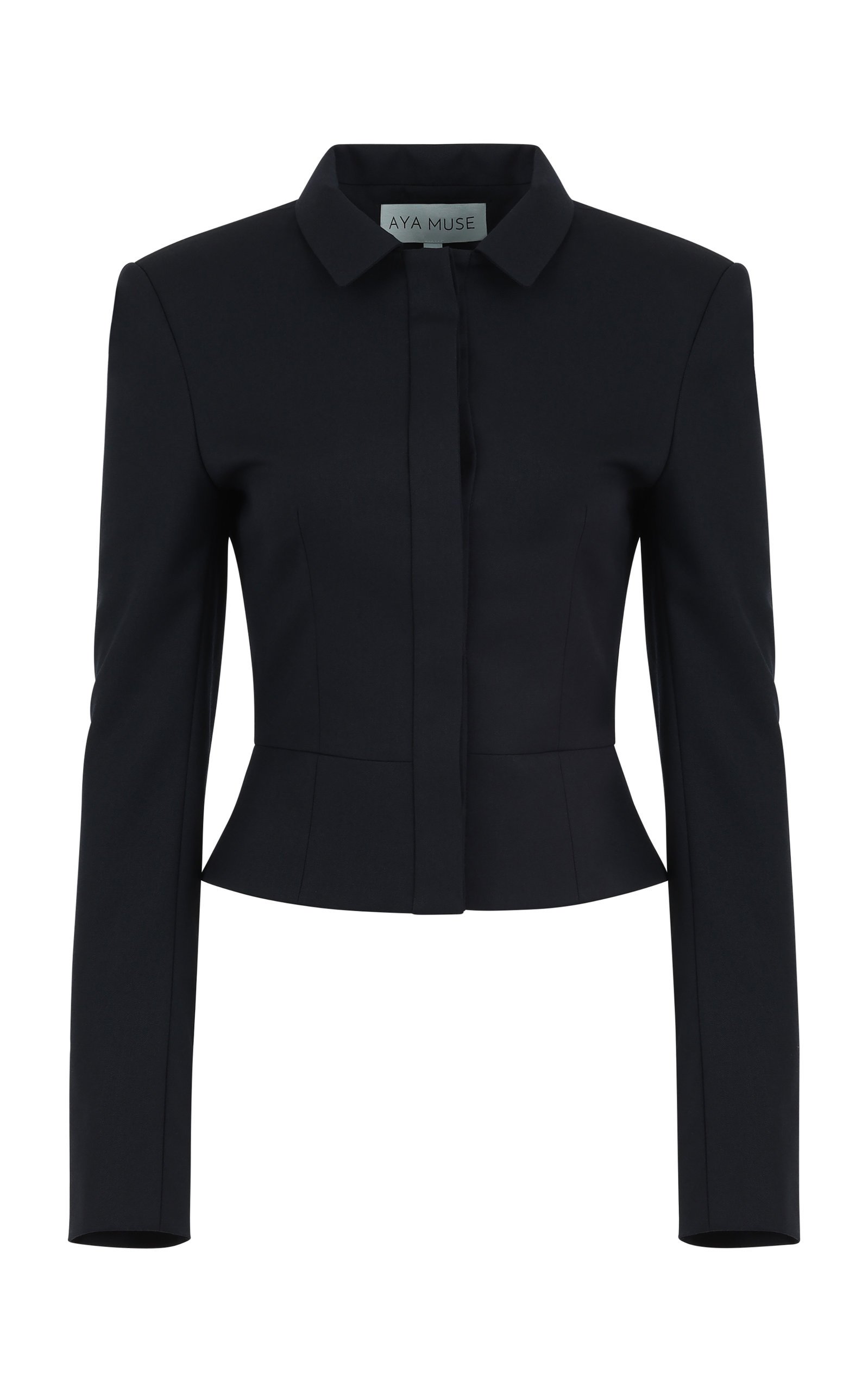EmRata was photographed on Valentine’s Day sporting chic navy separates from Aya Muse, including a wool-blend wrap miniskirt and a matching tailored jacket. She accessorized the look with a baseball cap, her go-to Nike X Tom Sachs General Purpose trainers, a miniskirt-and-jacket combo, and a Loewe Luna bag in the shape of a croissant.