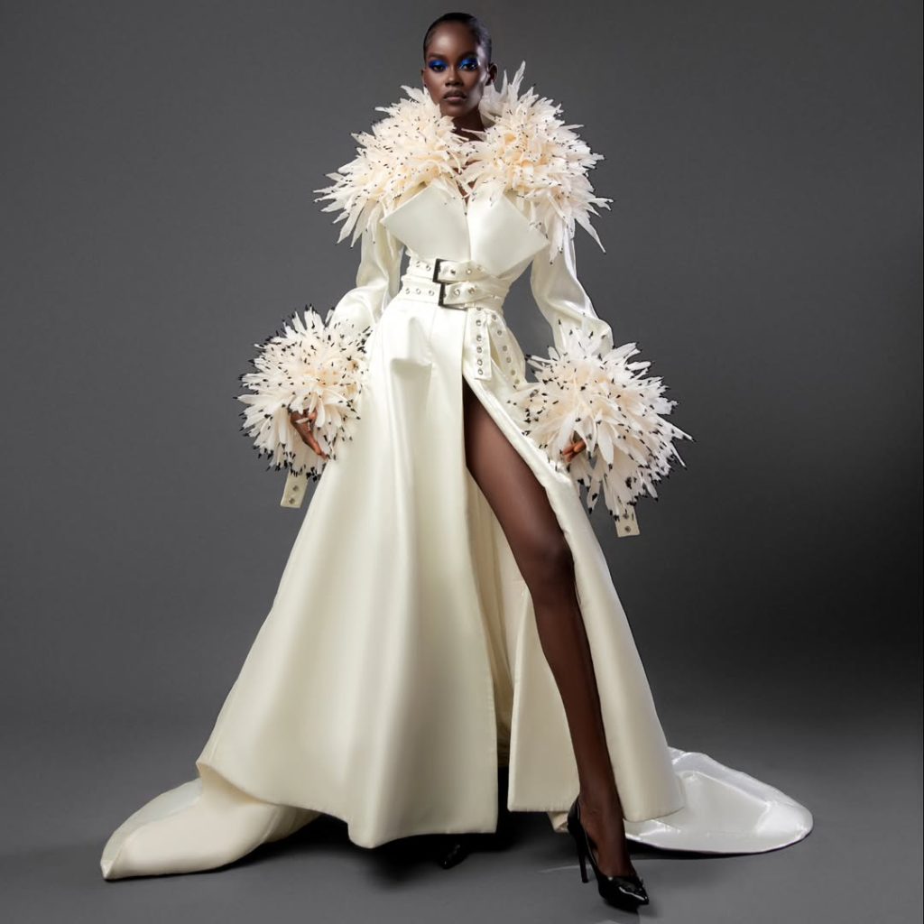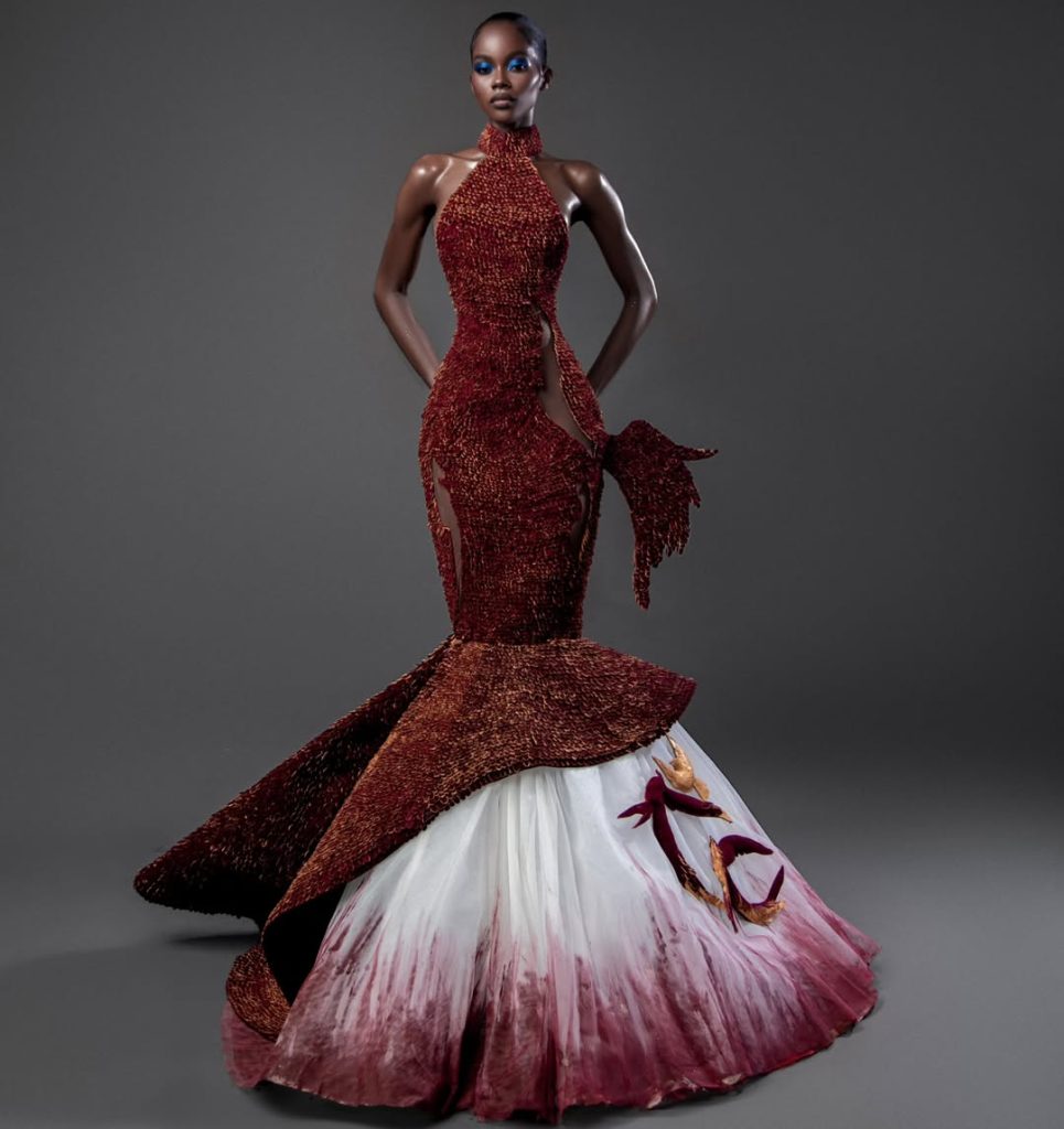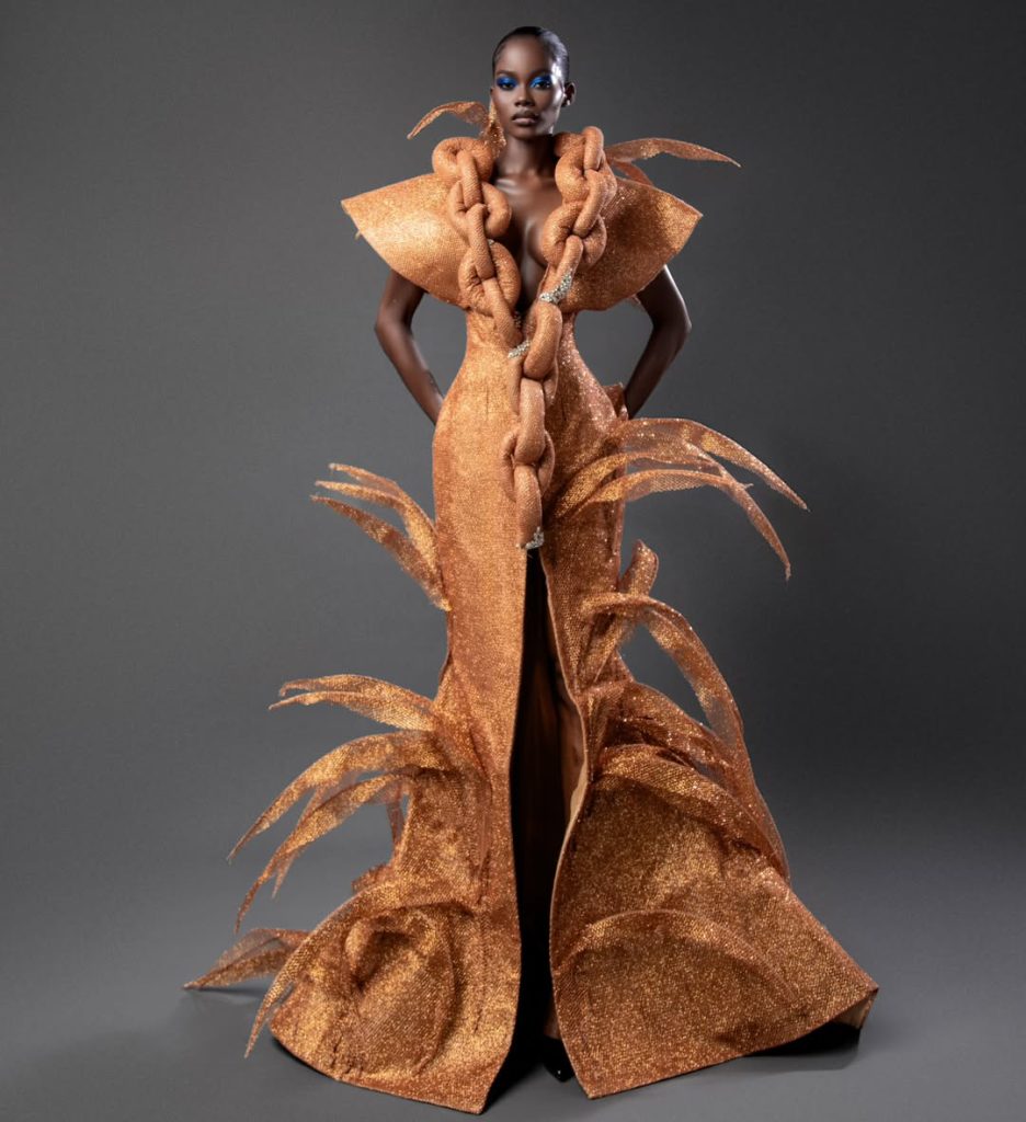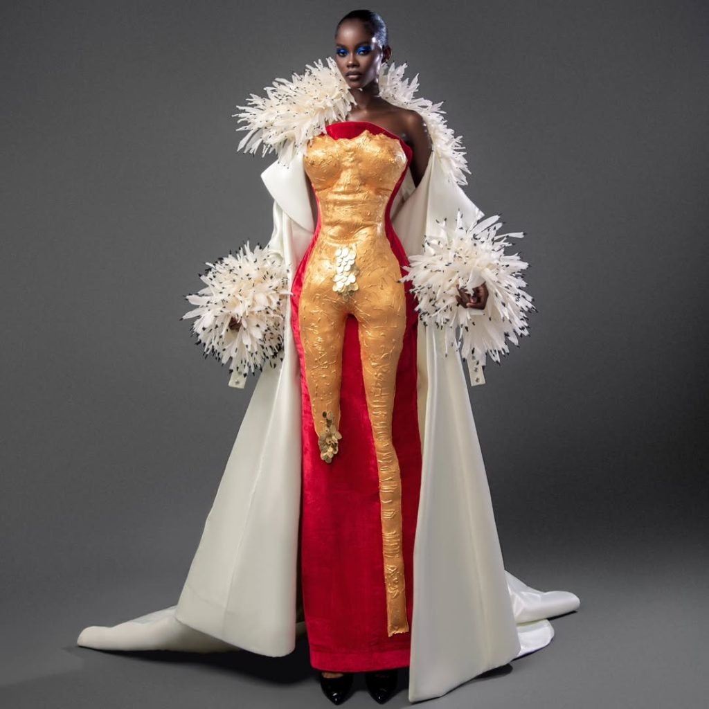 The Nigerian couturier orchestrates a symphony of structure, mythology, and unapologetic grandeur